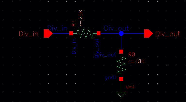 the 25k resistor laid out below and a 10k resistor implement a voltage