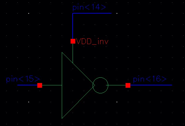 the inverter, the VDD is connected to pin<14>, the input is