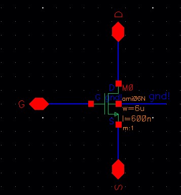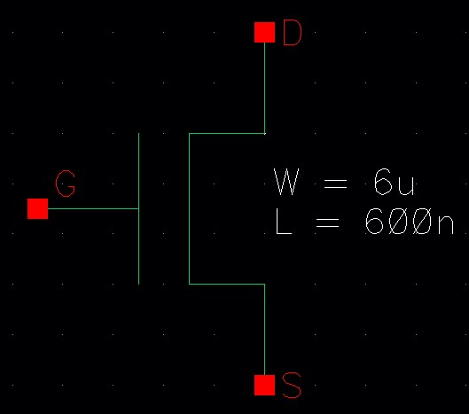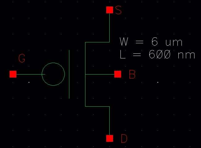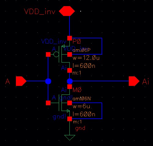 - An inverter made with a 6/0.6 NMOS and a 12/0.6 PMOS