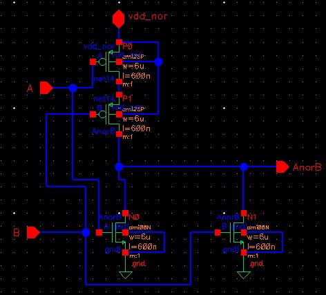 - NAND and NOR gates using 6/0.6 NMOSs and PMOSs