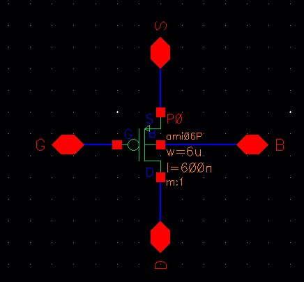 both PMOS and NMOS, measuring 6u/0.6u where all 4 terminals of each