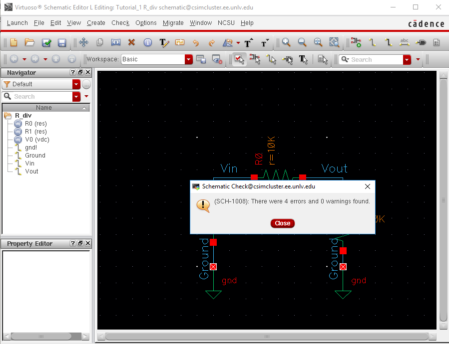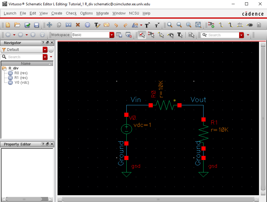 cds.lib file, and creating a new schematic (with parts already in place), this