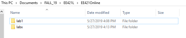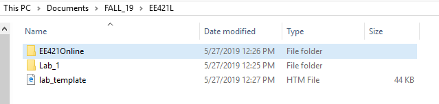I will create an EE421L folder, with 2 sections: The online part