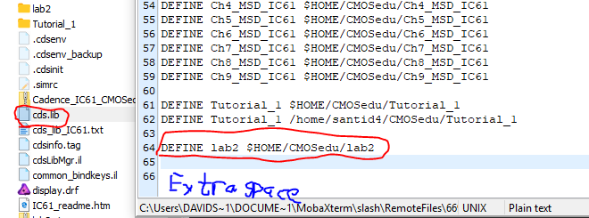 locate the cds.lib file in the CMOSedu directory, right click and open