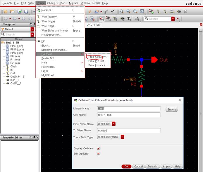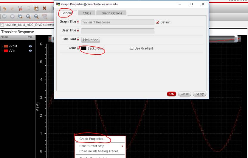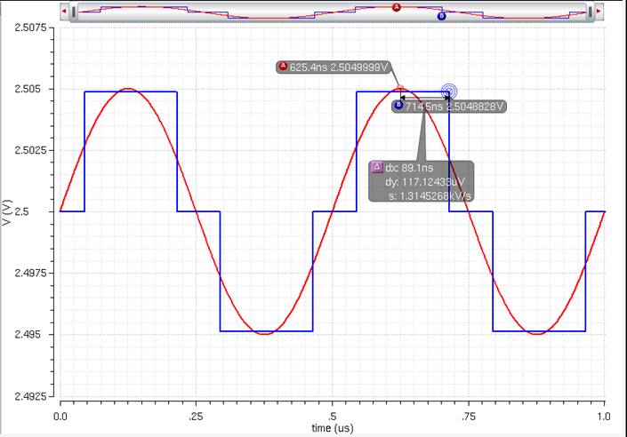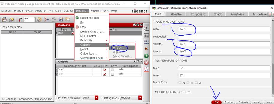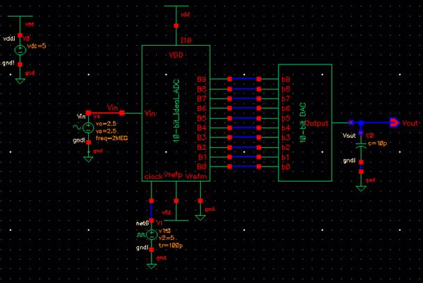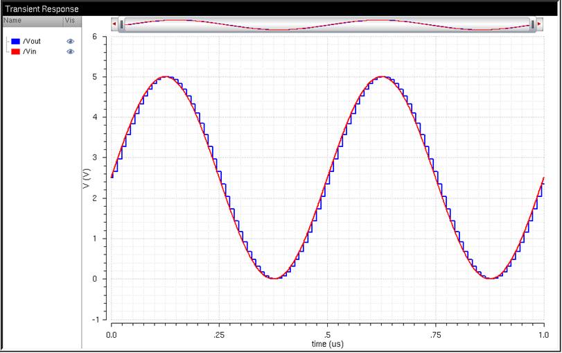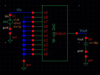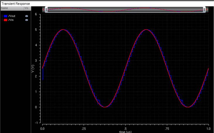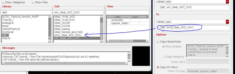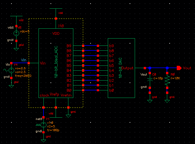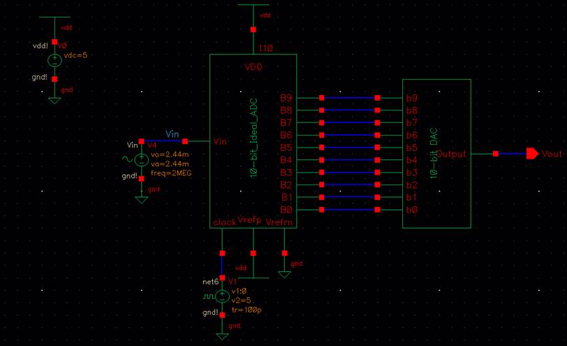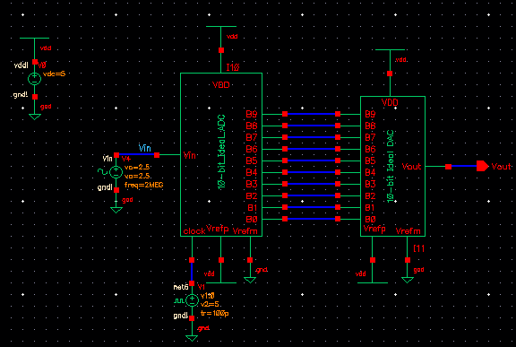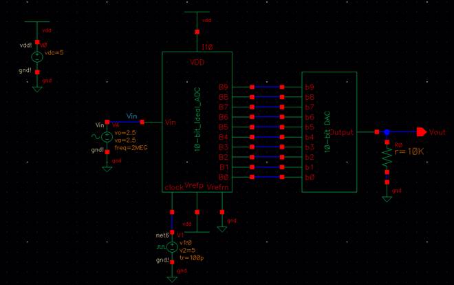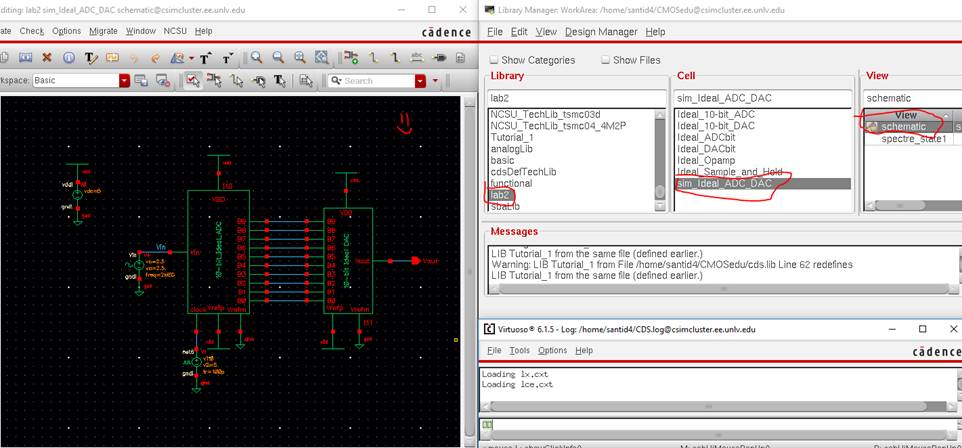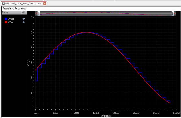 to the lab2 library, and open up the sim_Ideal_ADC_DAC schematic under the Cell menu.