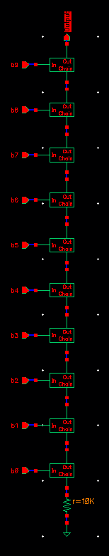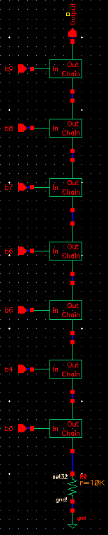 the Output Resistance, we will ground All inputs b0-b9 and combine the