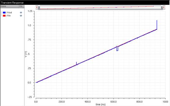 Ramp input, we use a longer rise time of 1μ second, and our ADE transient