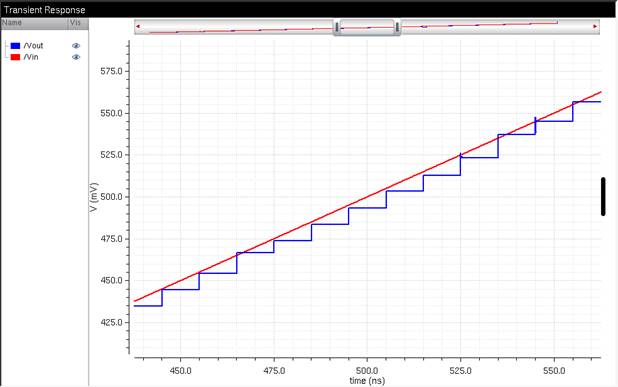 wave being fed into an ADC converter, with the output being a 10-bit value. Vout (Blue) is the output of the 10-bit values