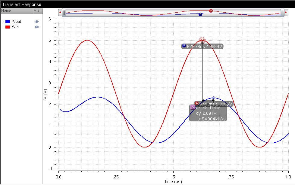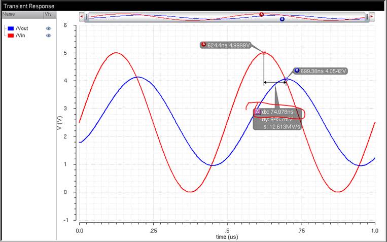 at half of the max of Vout is 69.4ns, which is close to the hand calcs.