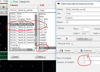 Instance library for NCSU_TechLib_ami06 and find ntap.