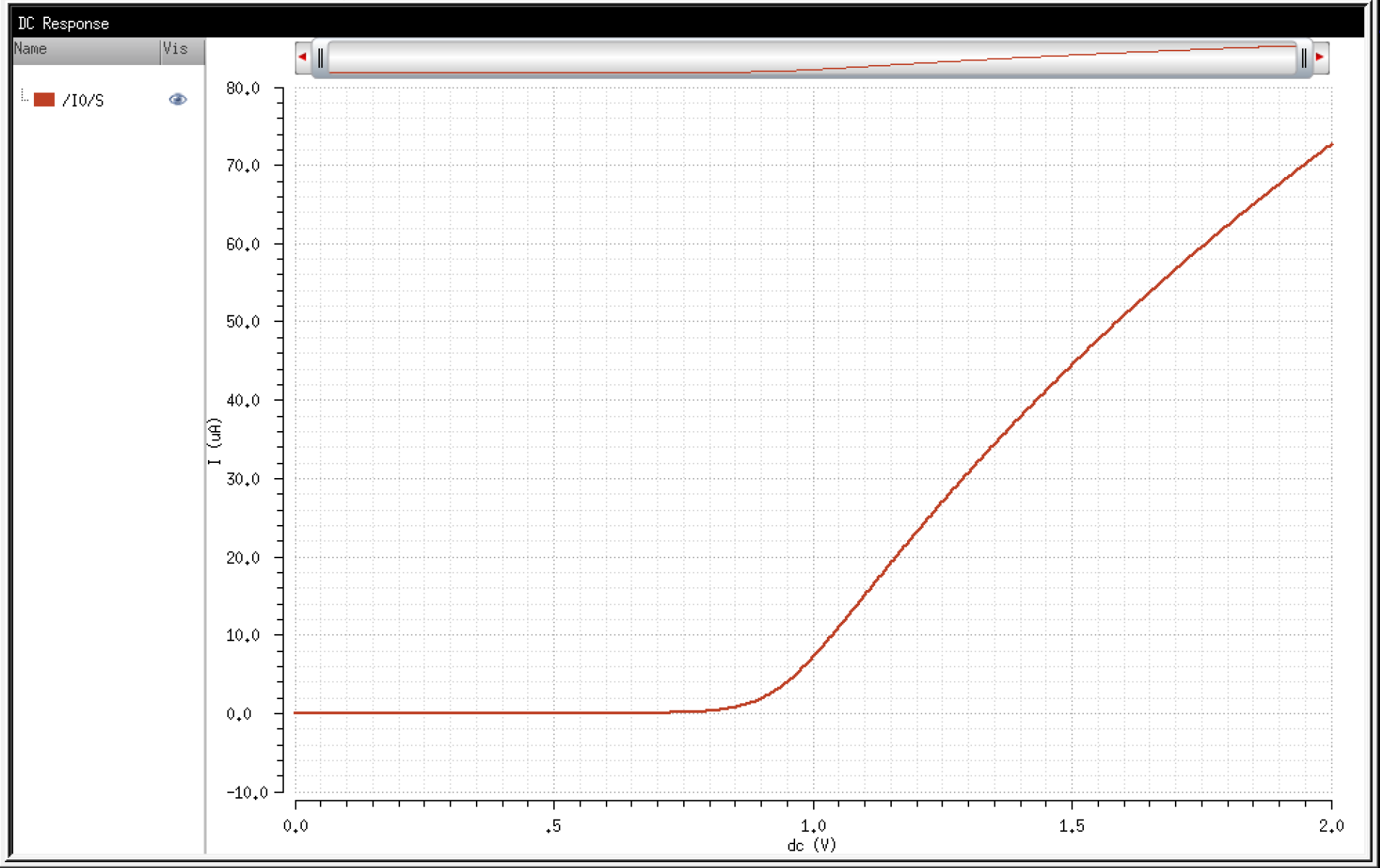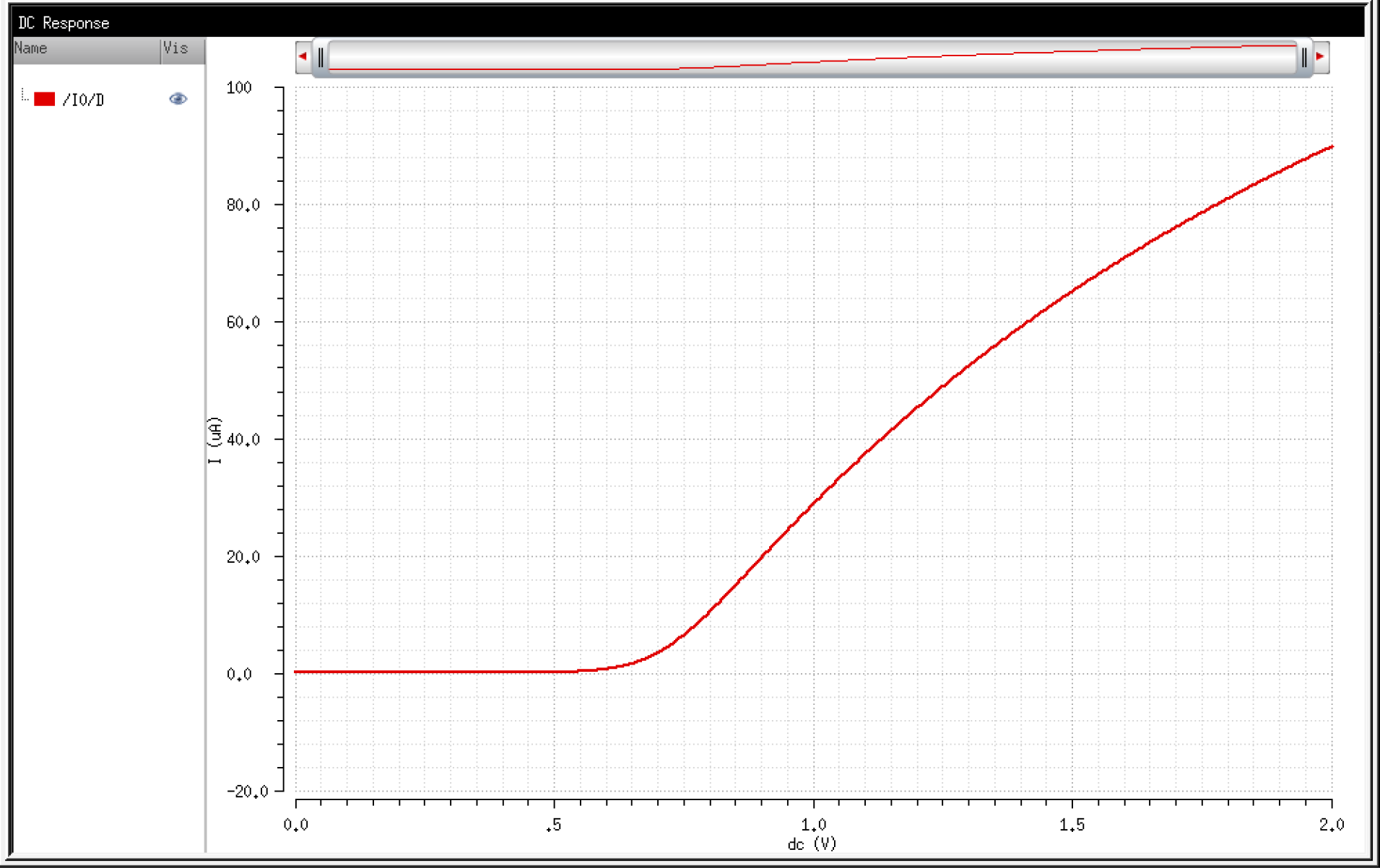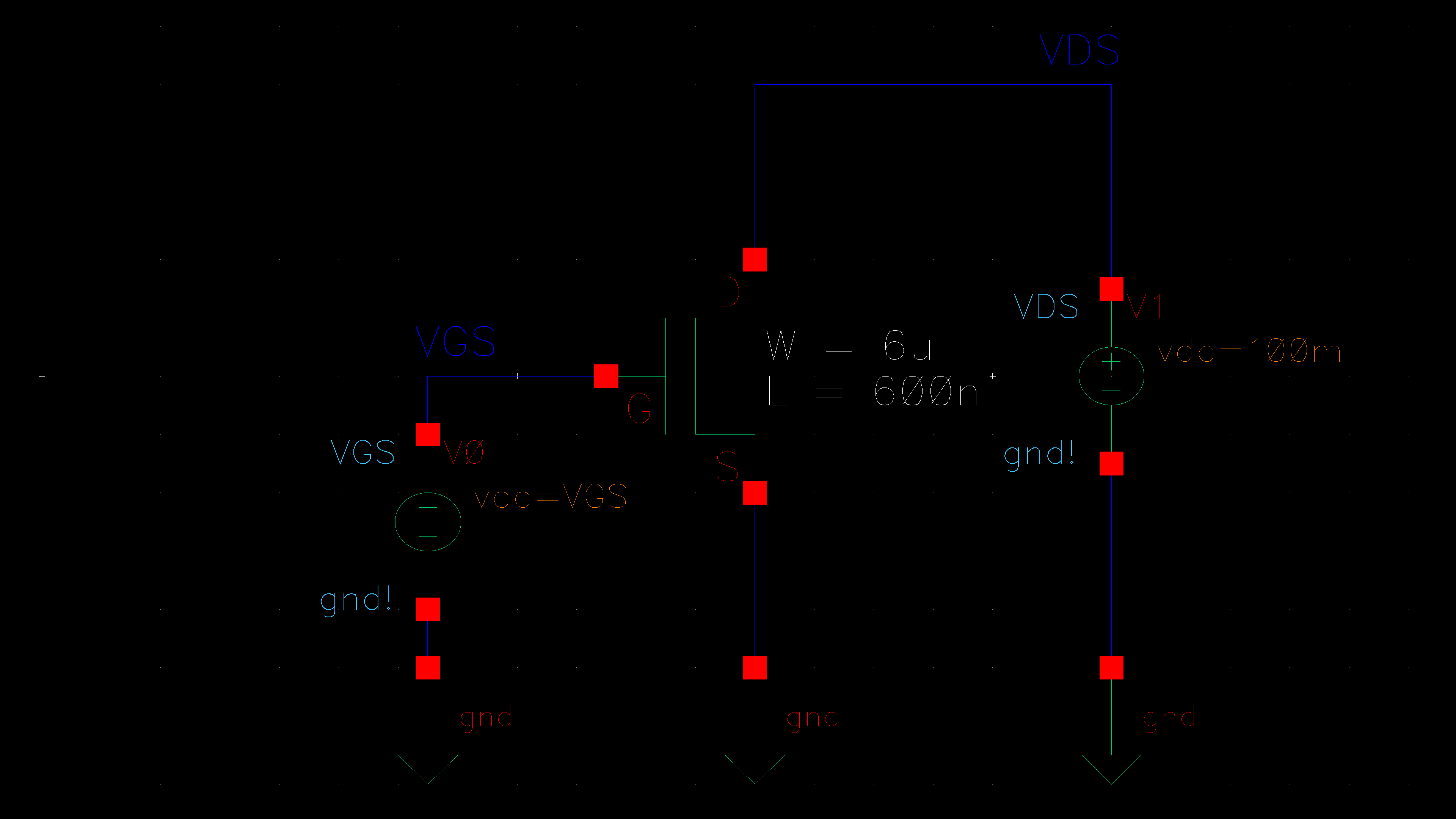 Here, we set VDS = 100mV and vary VGS from 0 to 2V in 1mV steps.