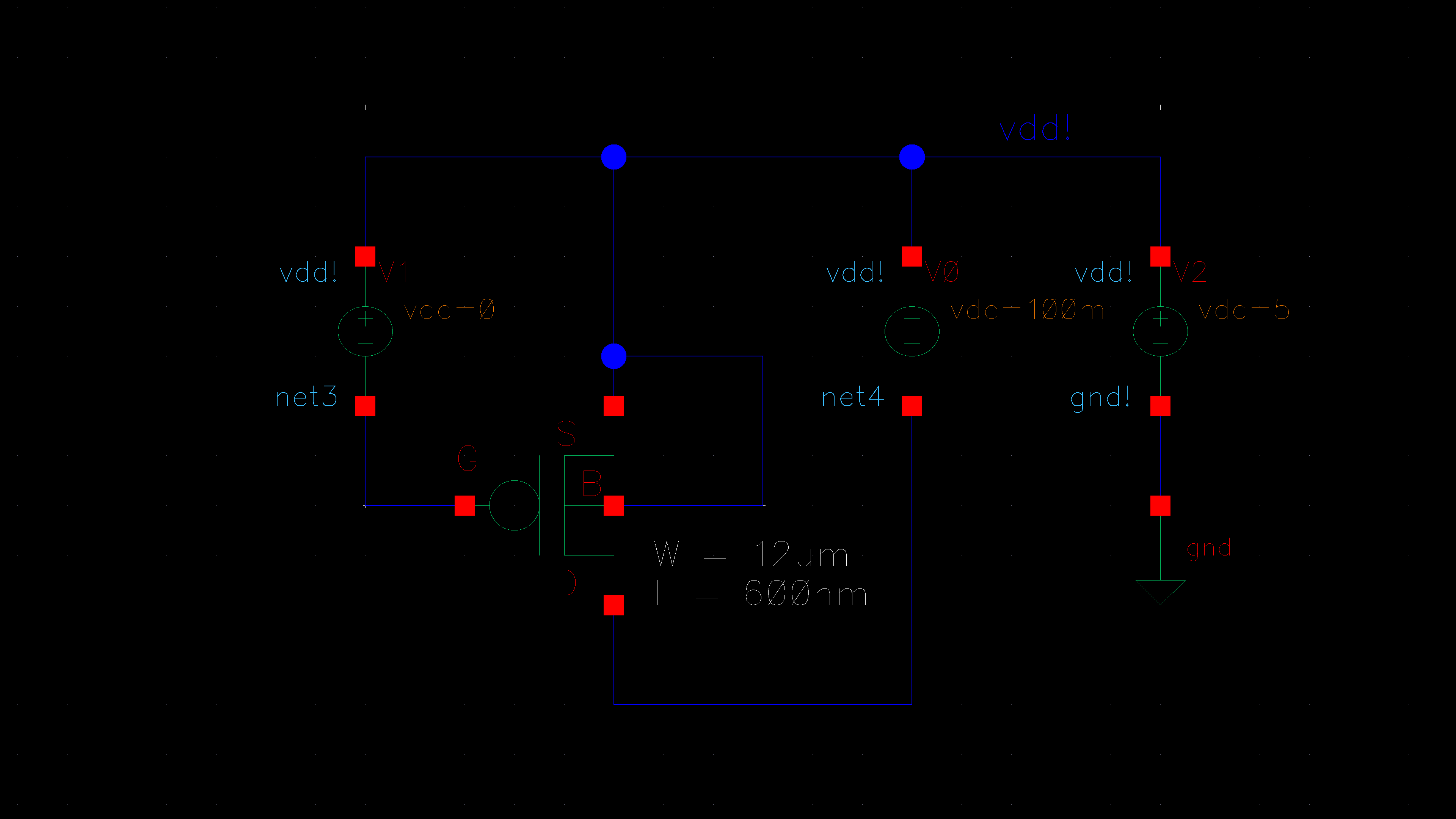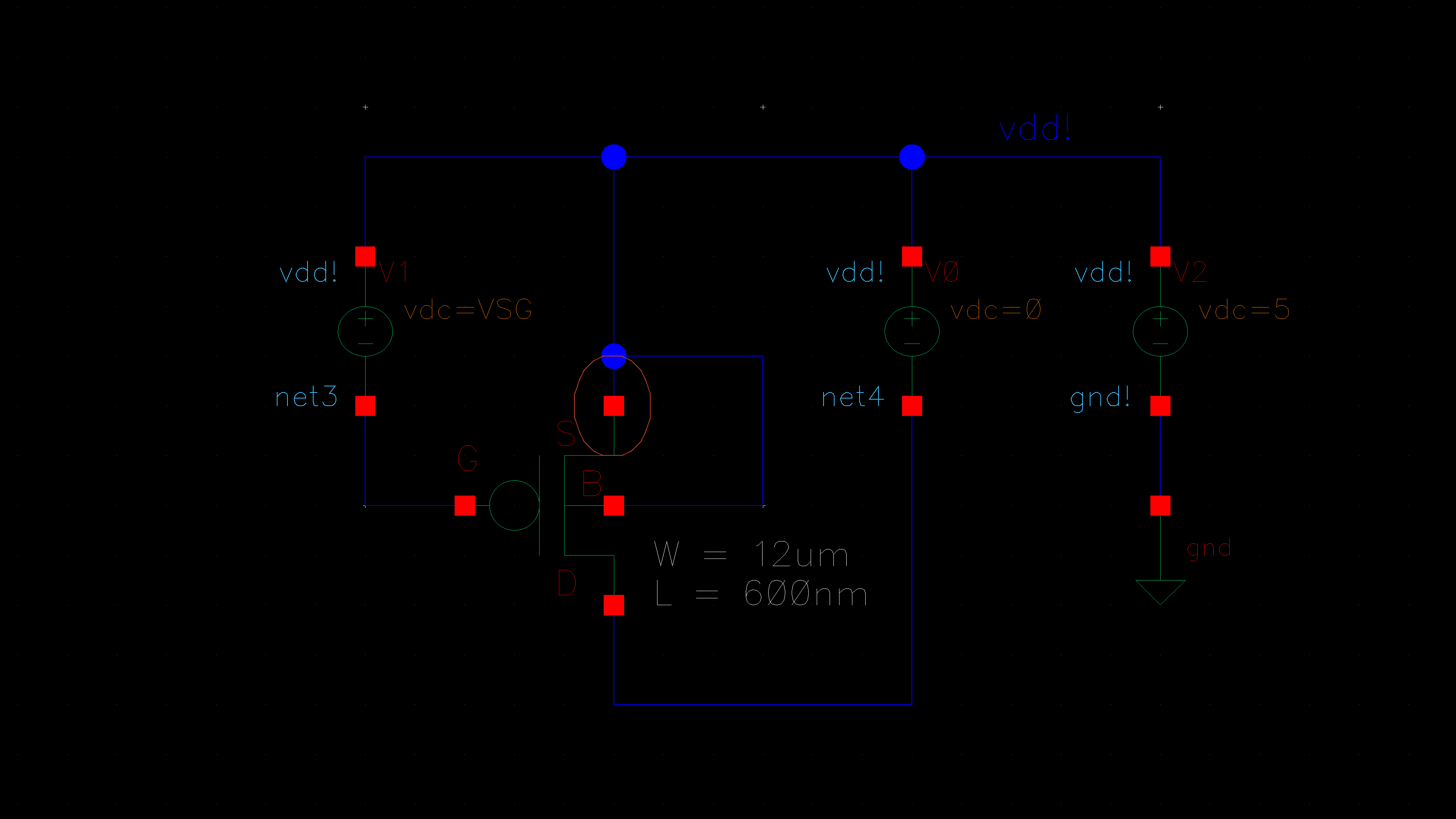 Here, we vary VSG from 0 to 5V in 1V steps while VSD varies from 0 to 5V in 1mV steps.