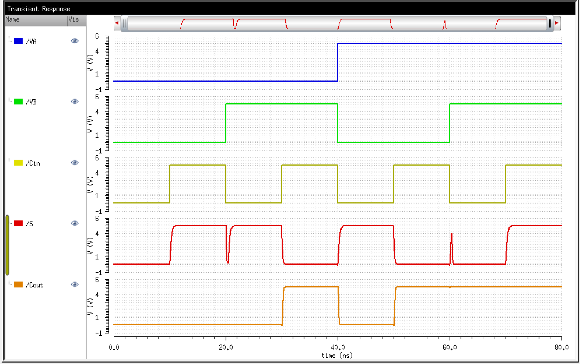 As seen below, the simulations match the generic truth table of a Full Adder.