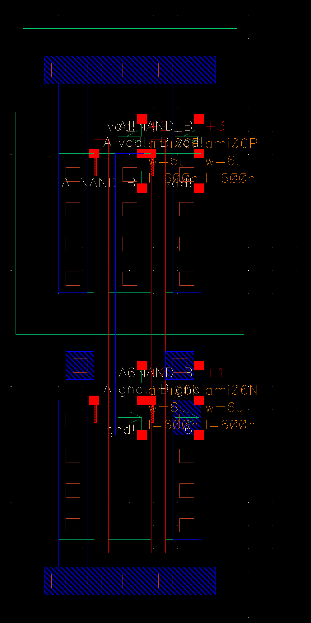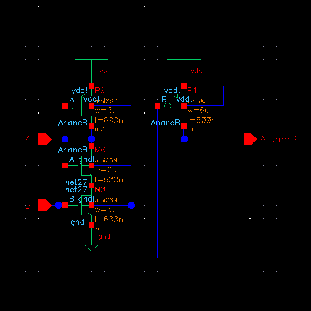 Here we will design our own NAND gate using 6u/0.6u NMOS and PMOS MOSFETs.