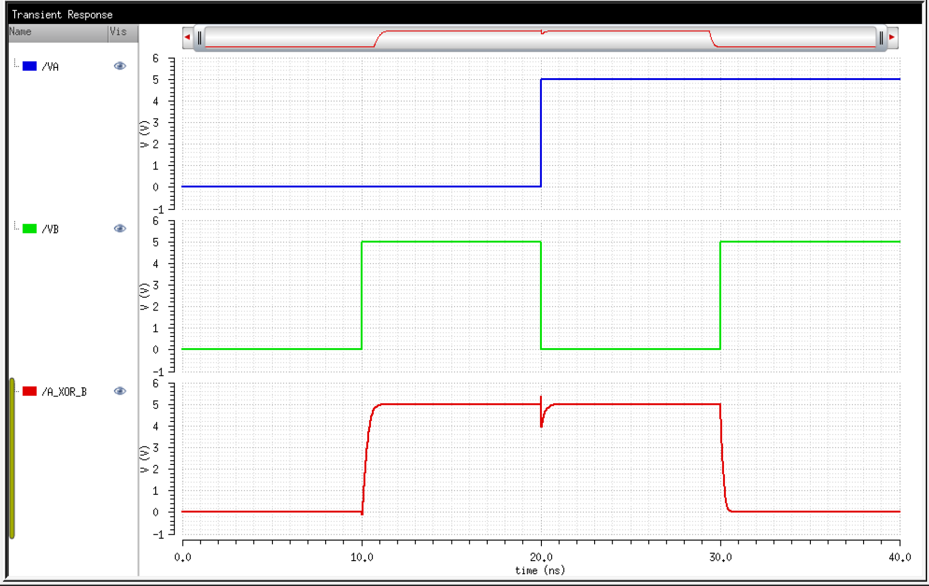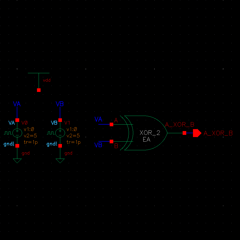 can now simulate our XOR gate. A XOR gate outputs logic 1 if either, but not both, inputs, are 1.