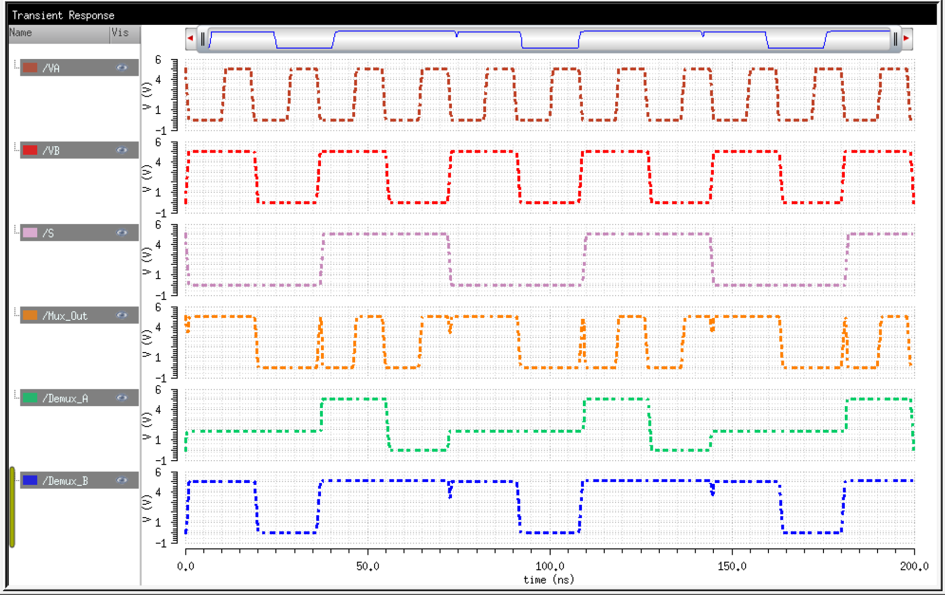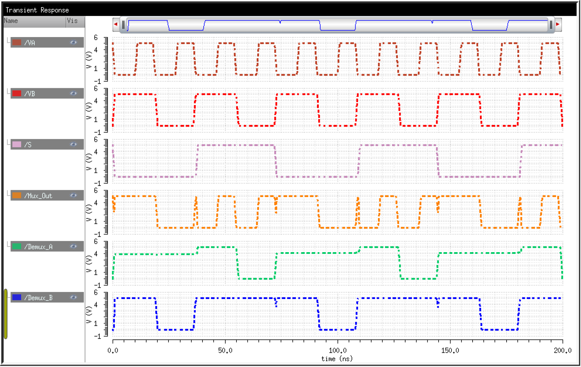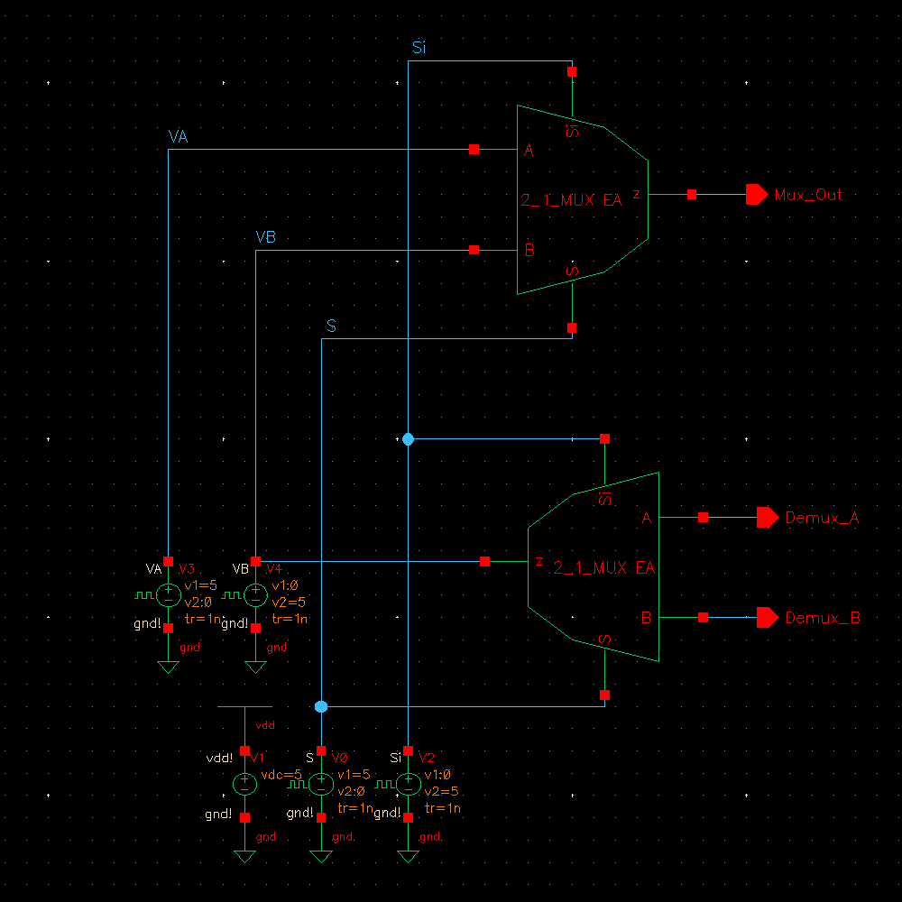 We can simulate both the MUX and DEMUX together by just reversing their inputs/outputs.