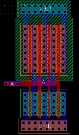 four pins on the layout (vdd!, gnd!, A, Ai).