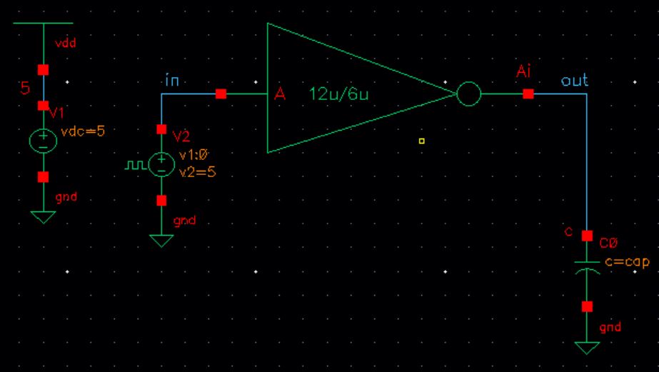 Finally to finish the prelab we will design a schematic and run a simulation of our inverter.