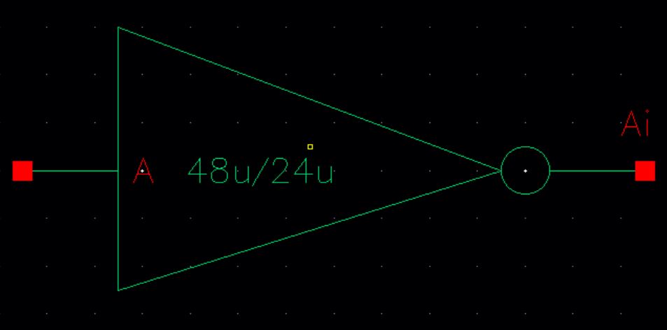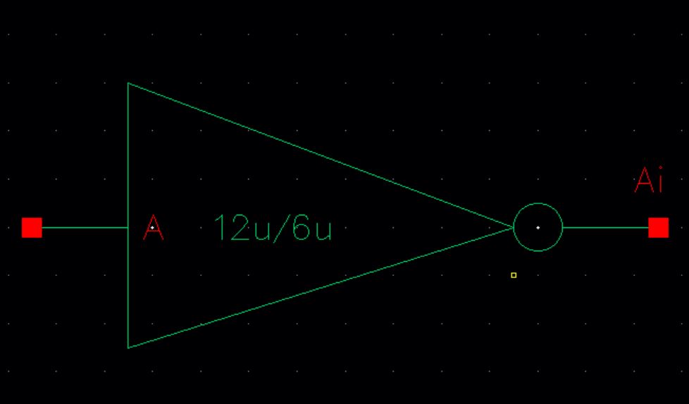 - Draft schematics, layouts, and symbols for two inverters having sizes of: