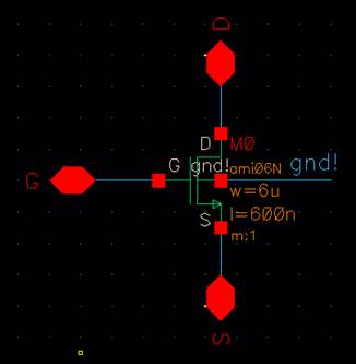 NMOS IV Schematic and Symbol:
