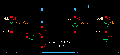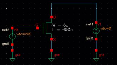 Next part is the schematic simulating I_D vs V_SD on the