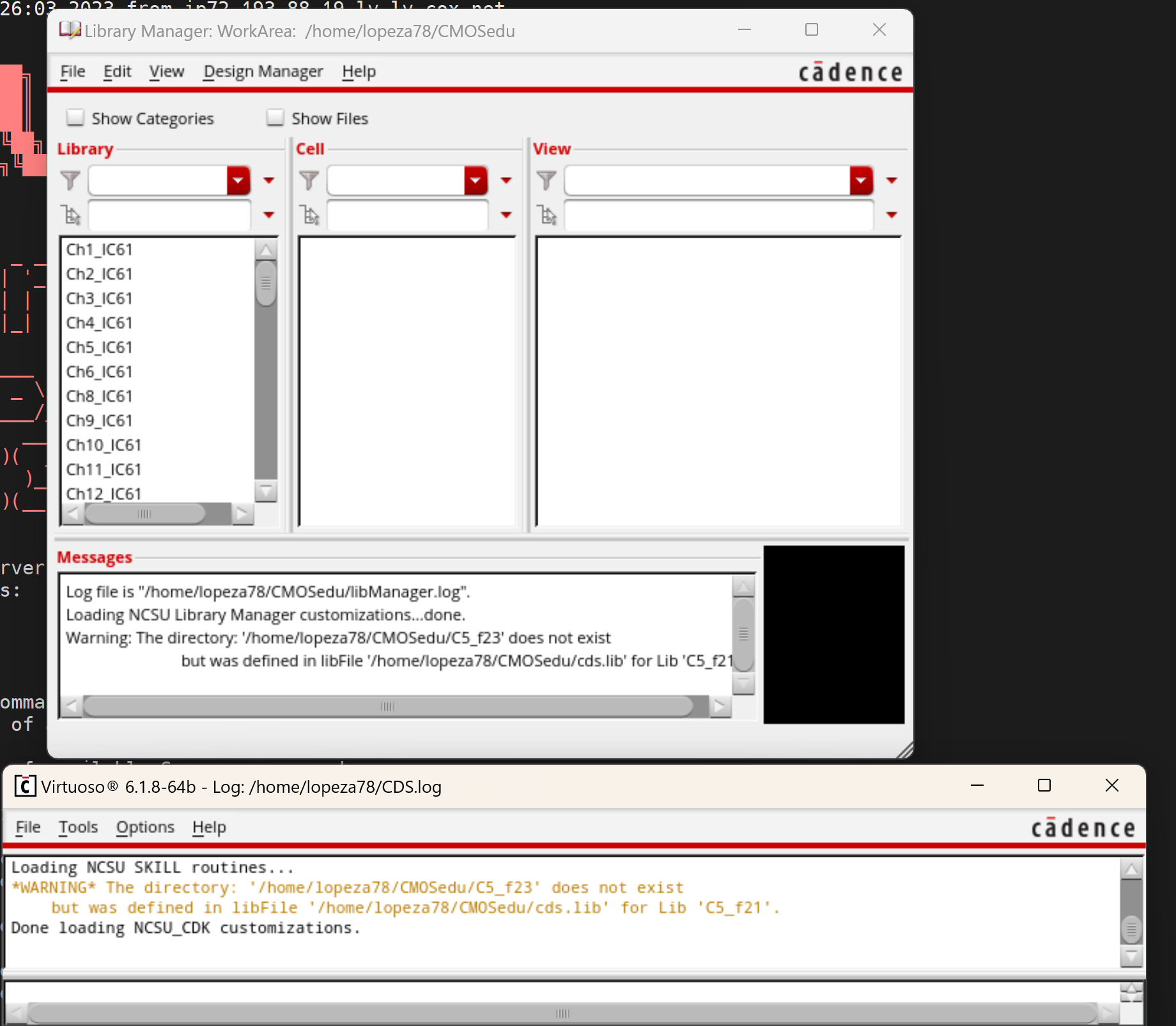 Here through candence in our CMOSedu directory we start virtuoso with