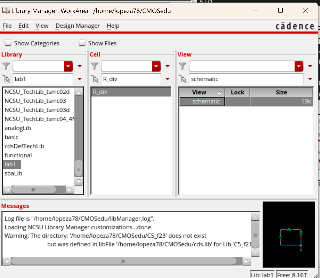 kinds of files. For this tutorial we made a schematic file called R_div.