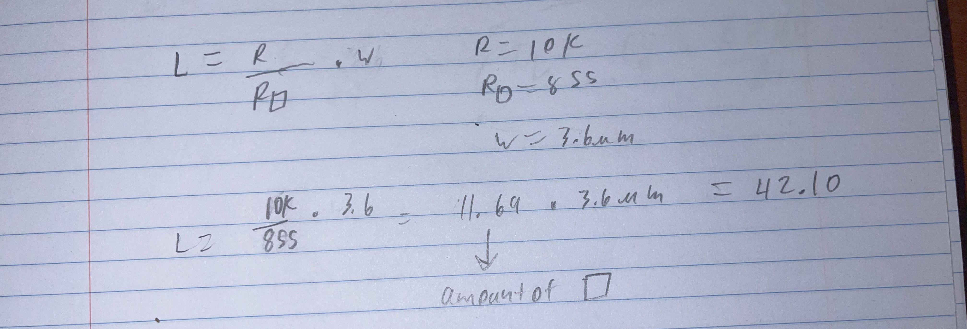 - As we said above you have three of these values so you solve for length can plug in 855 for sheet resistance and then 3.6micro m
