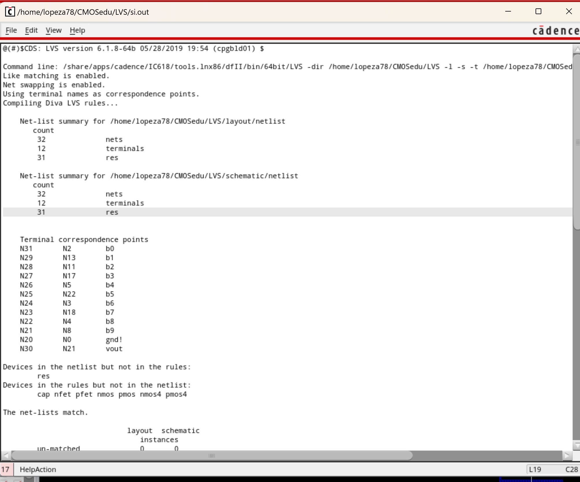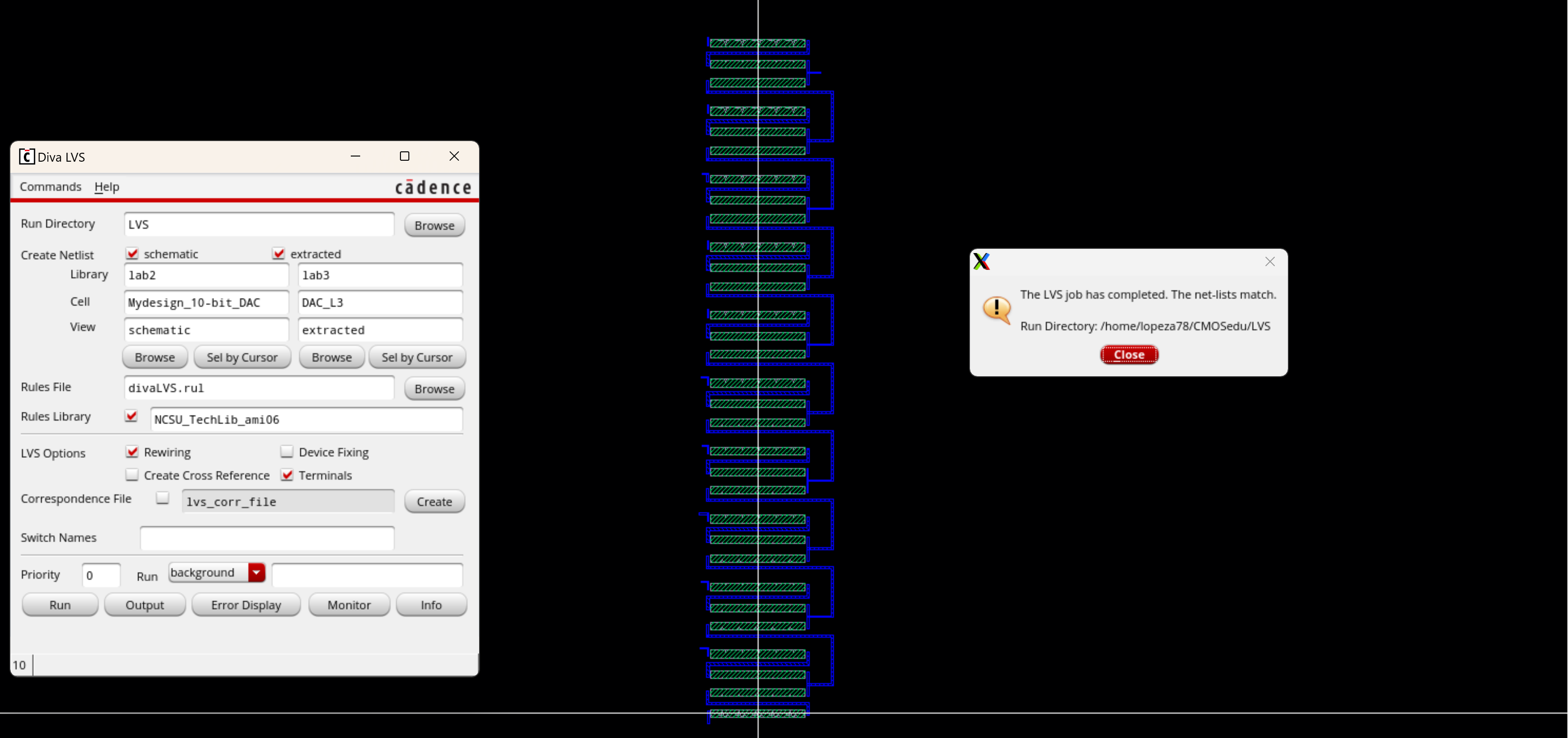 Once that is finished I now extract the layout to then perform LVS the