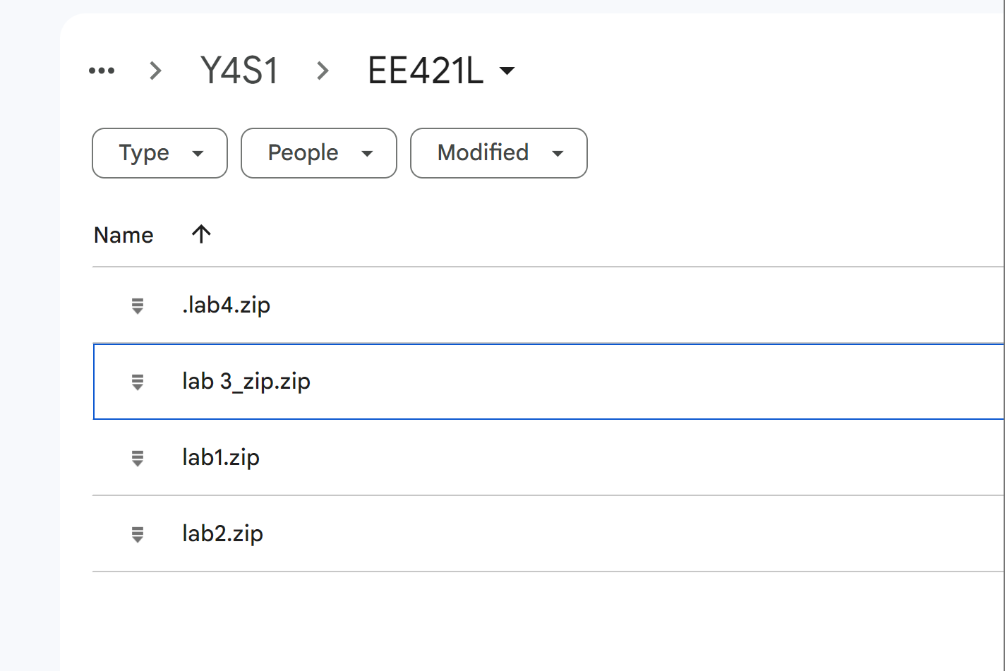 - The following shows my zipped lab 4 file in my drive.