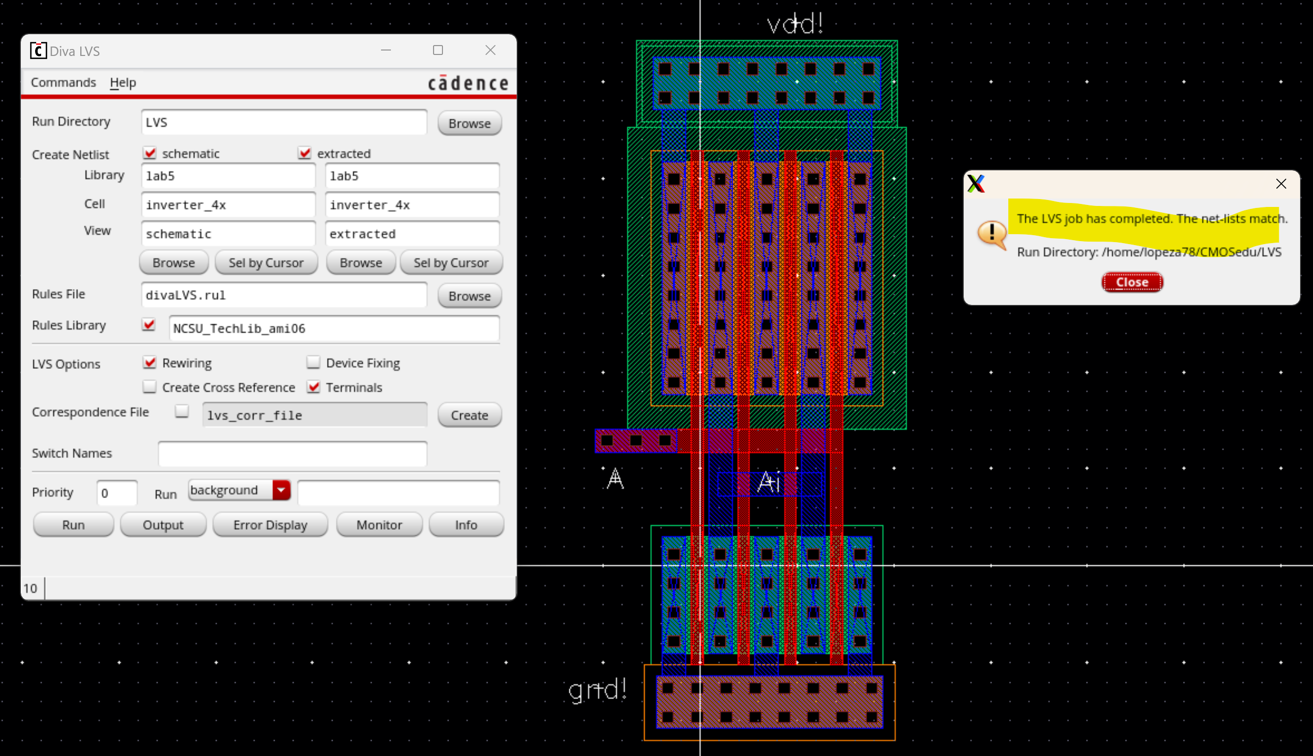 - Layout and DRC then LVS results