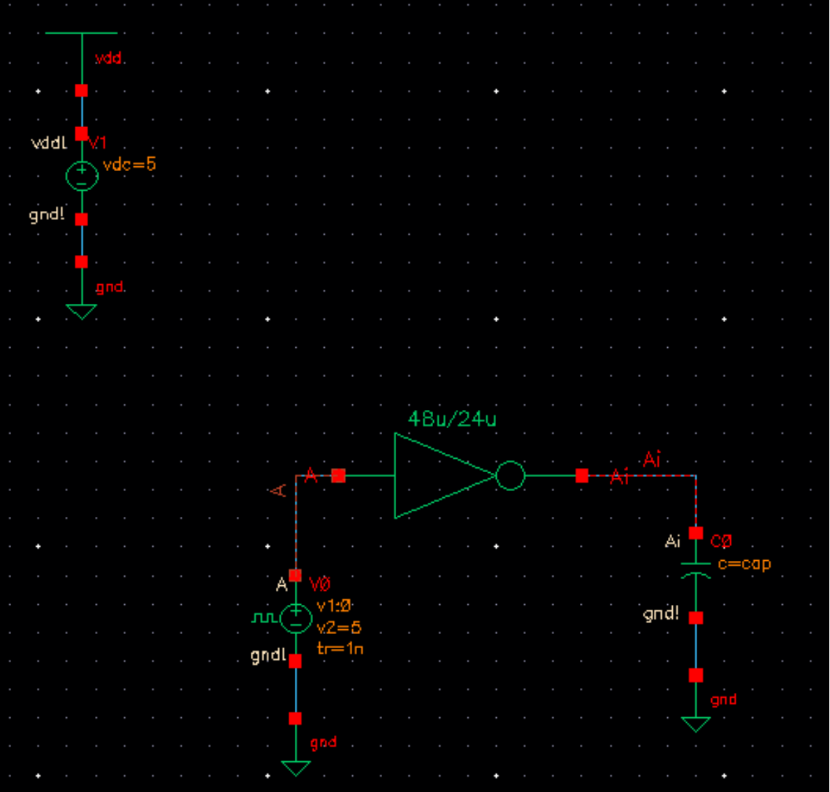 - Now we simulate our 48u/24u inverter. The following images will be my schematic and