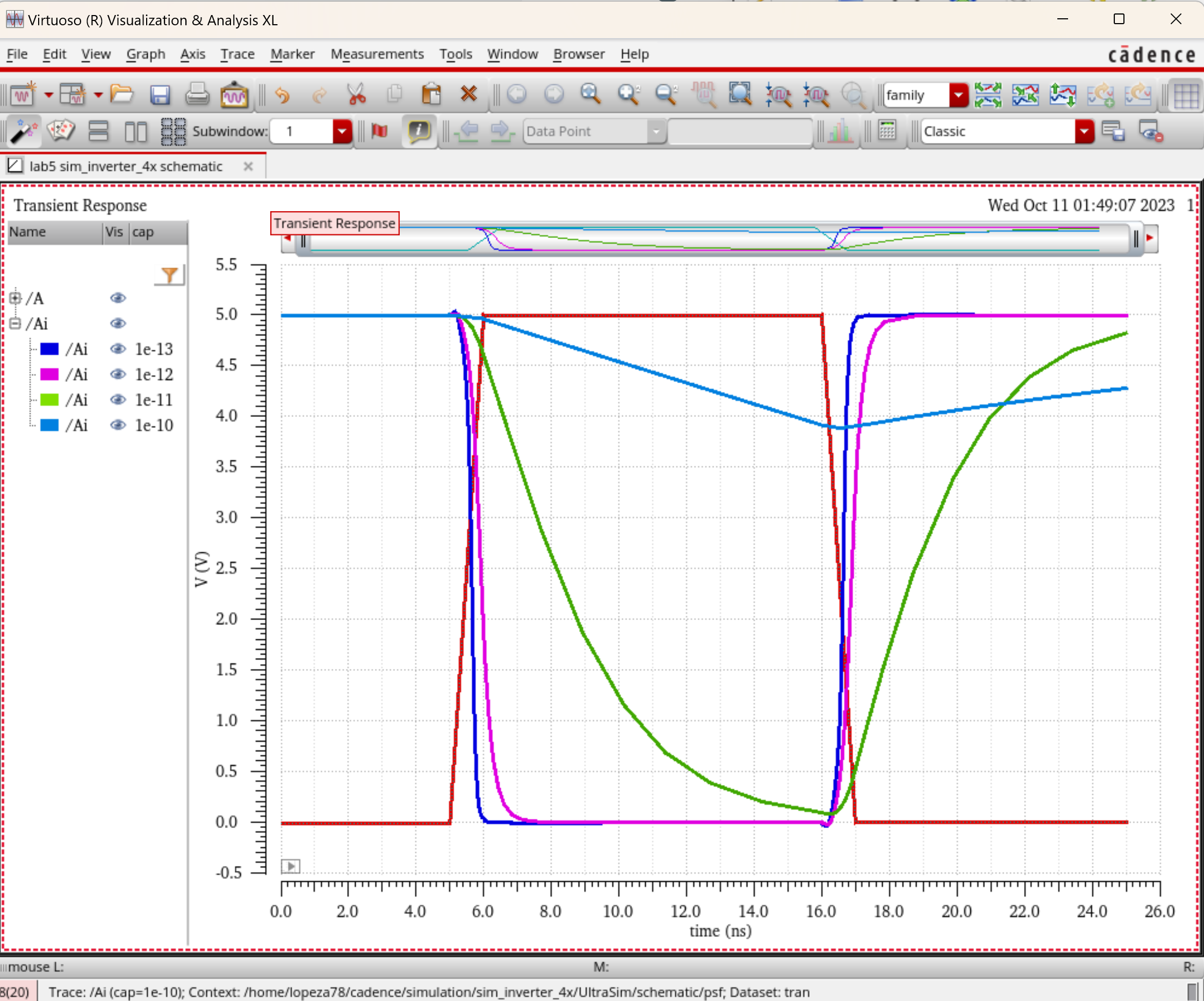 - Using SPICE simulate the operation of both of your inverters showing each driving a 100 fF, 1 pF, 10 pF, and 100 pF capacitive load.