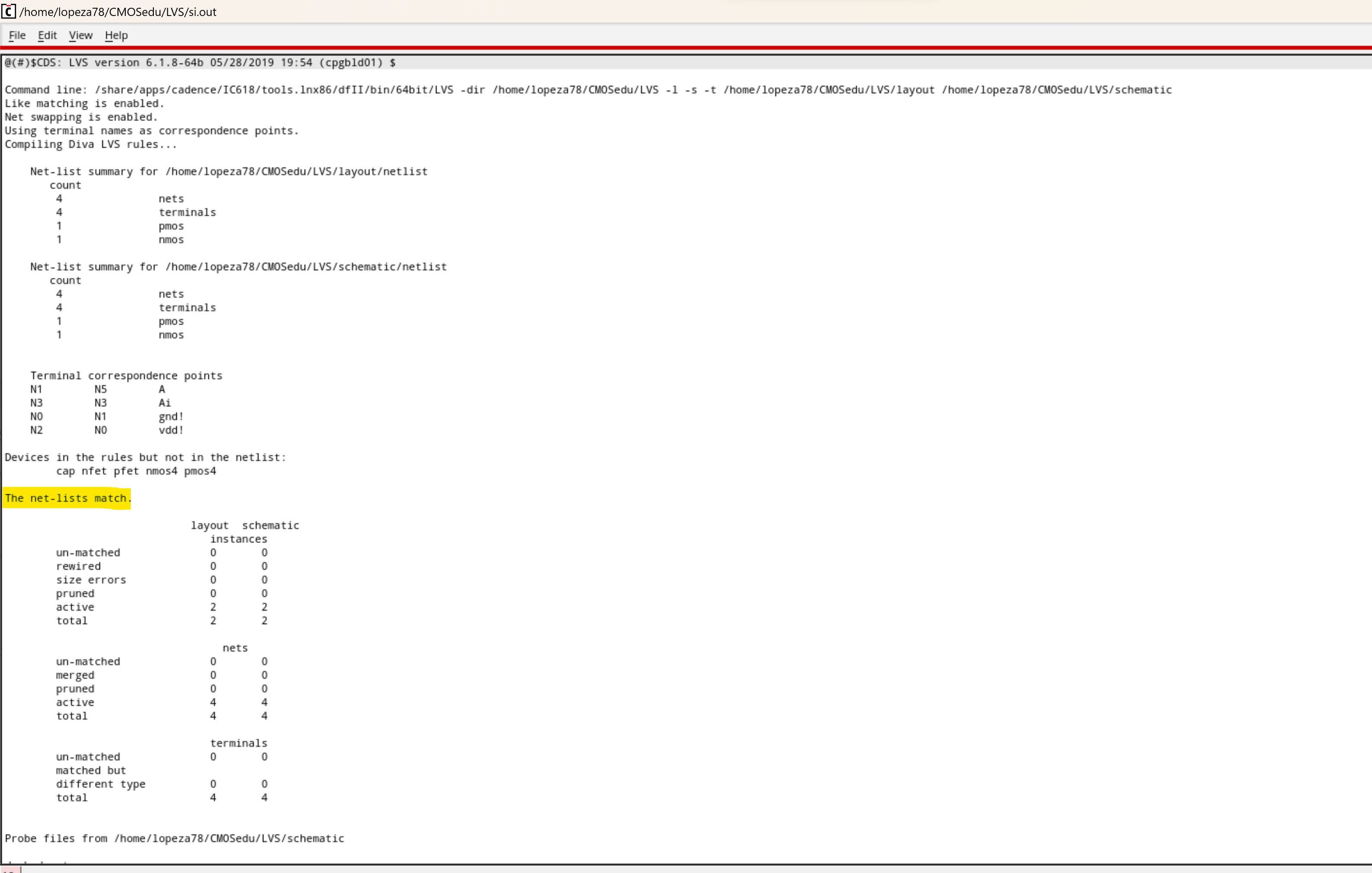 the following is the LVS compared to the schematic previously shown.