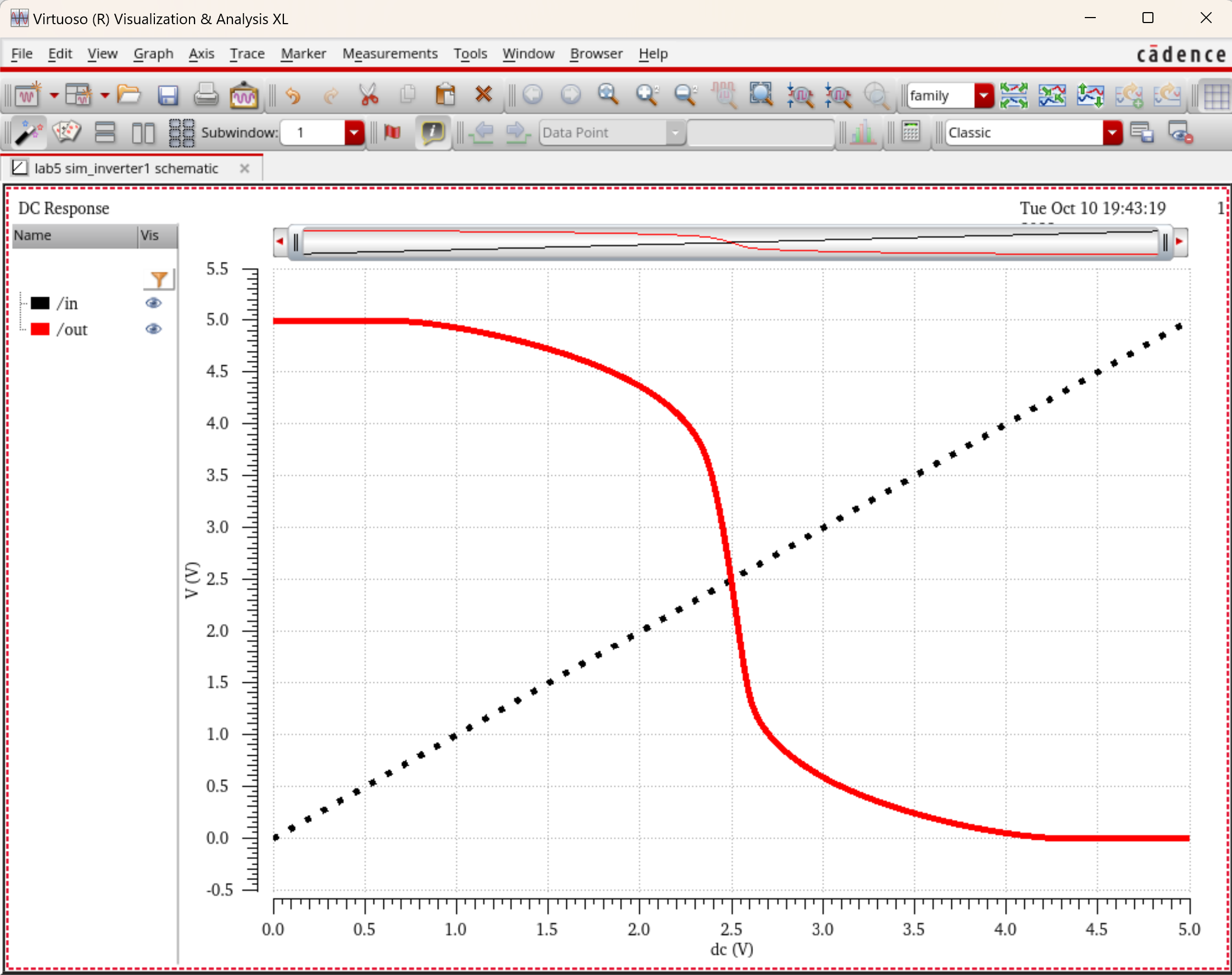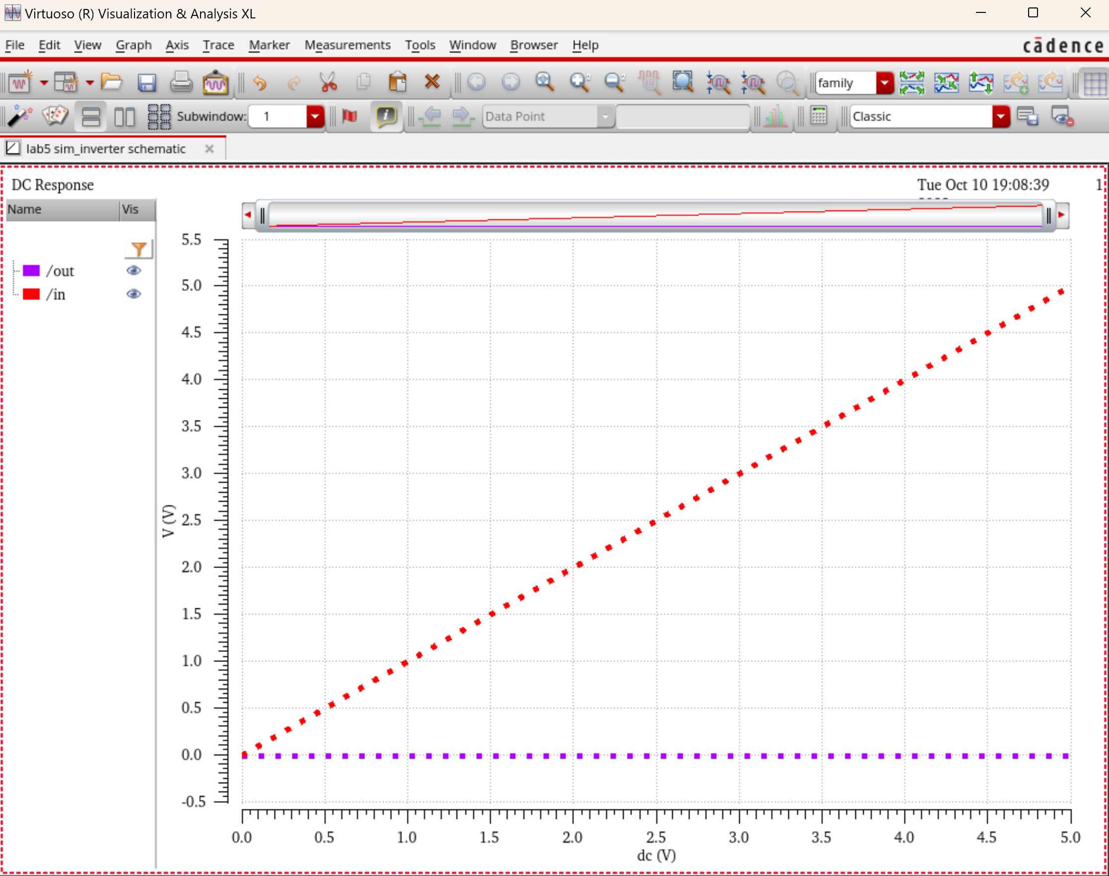 the results of our dc sweep simulation, having V0 going from 0v to 5v