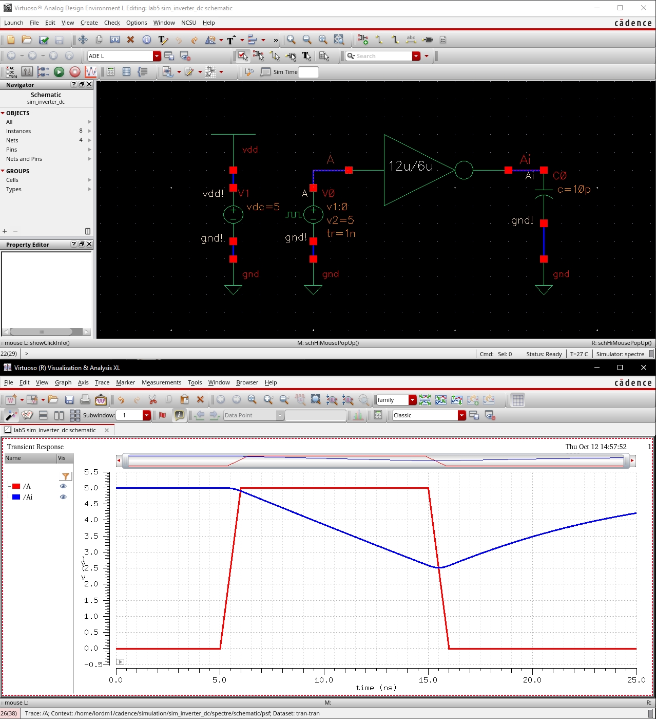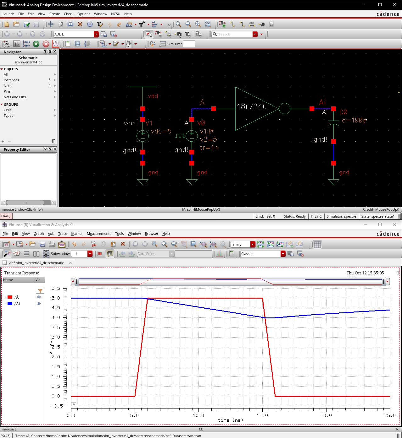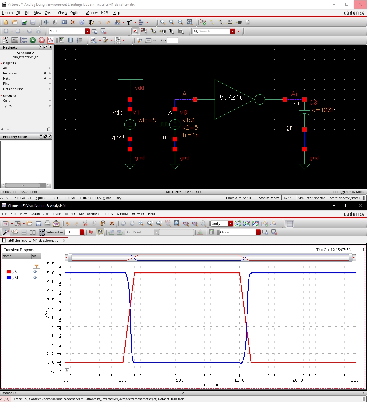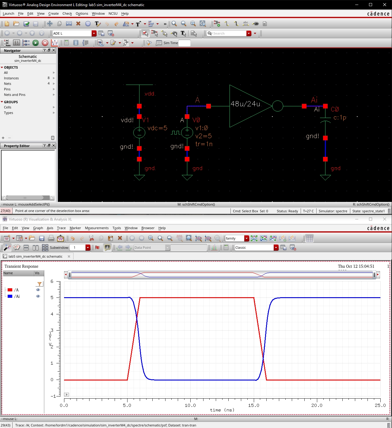 o Simulation of inverter schematic