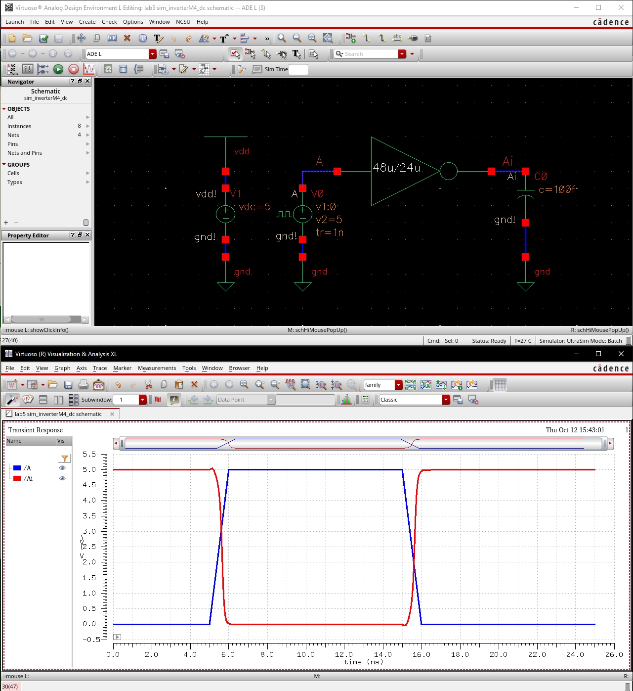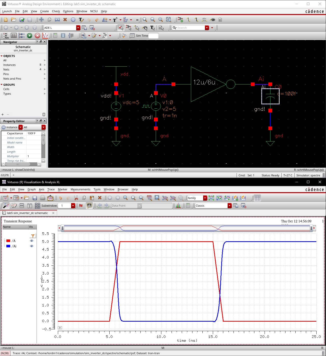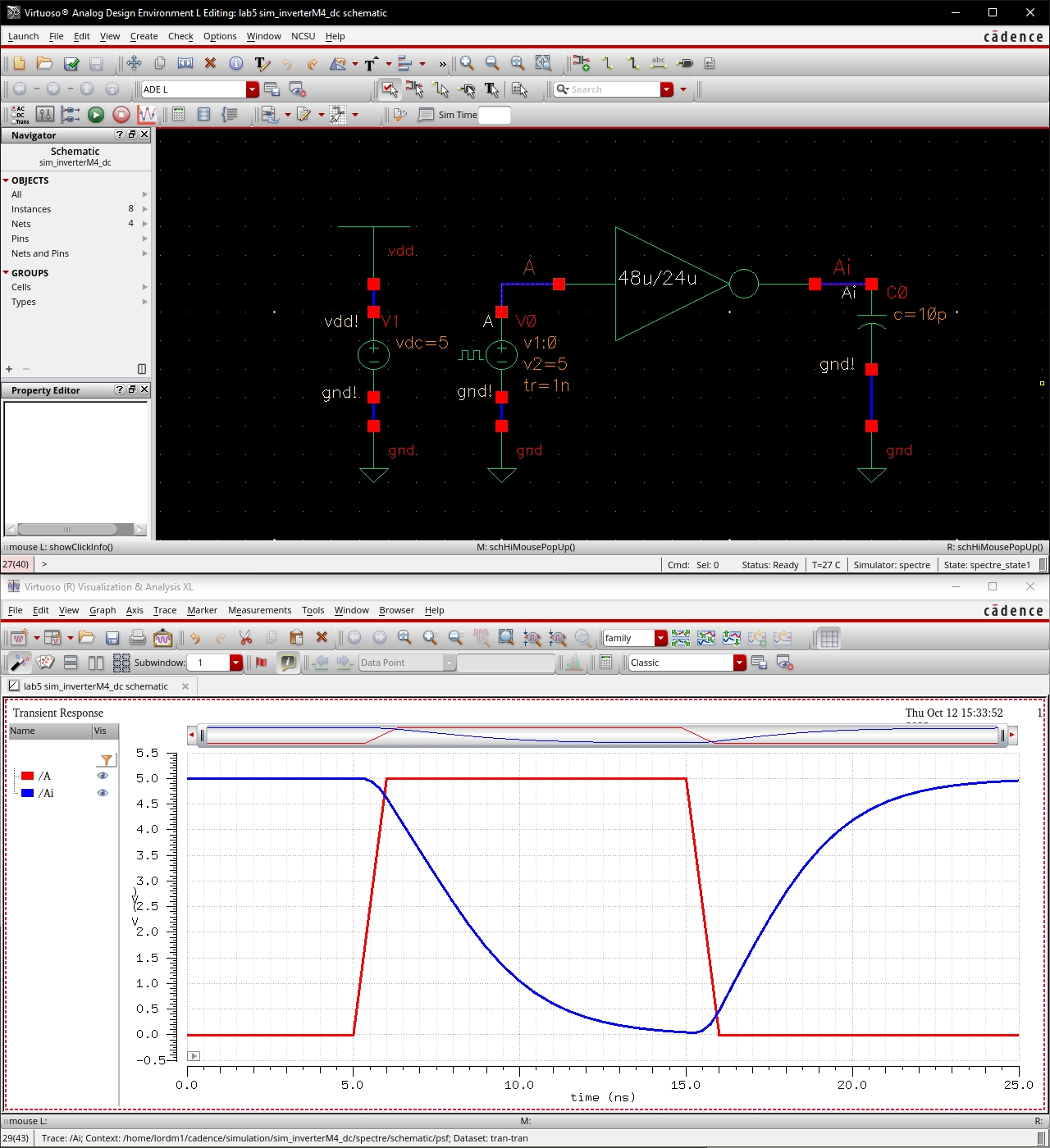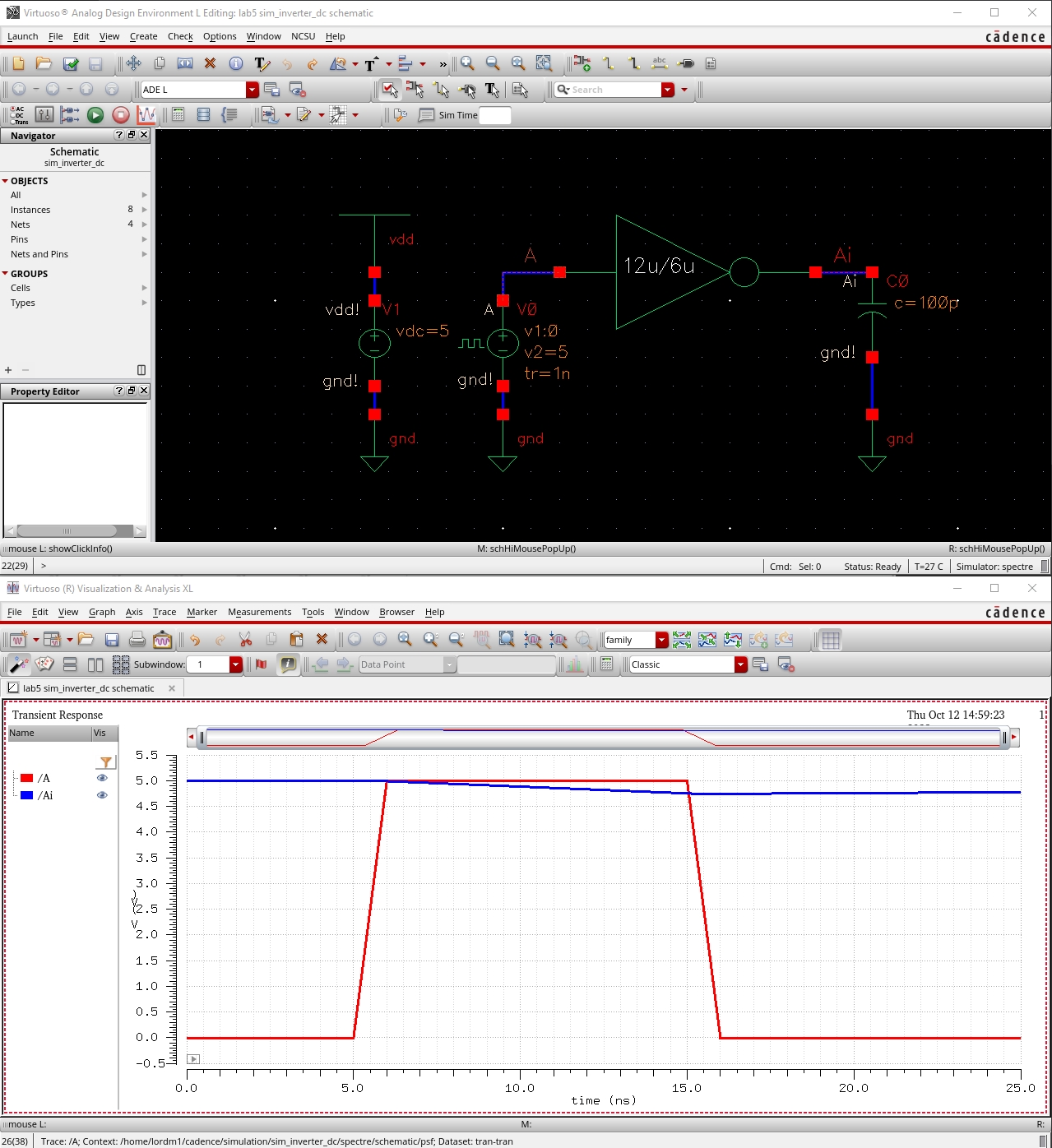 o Simulation of inverter schematic
