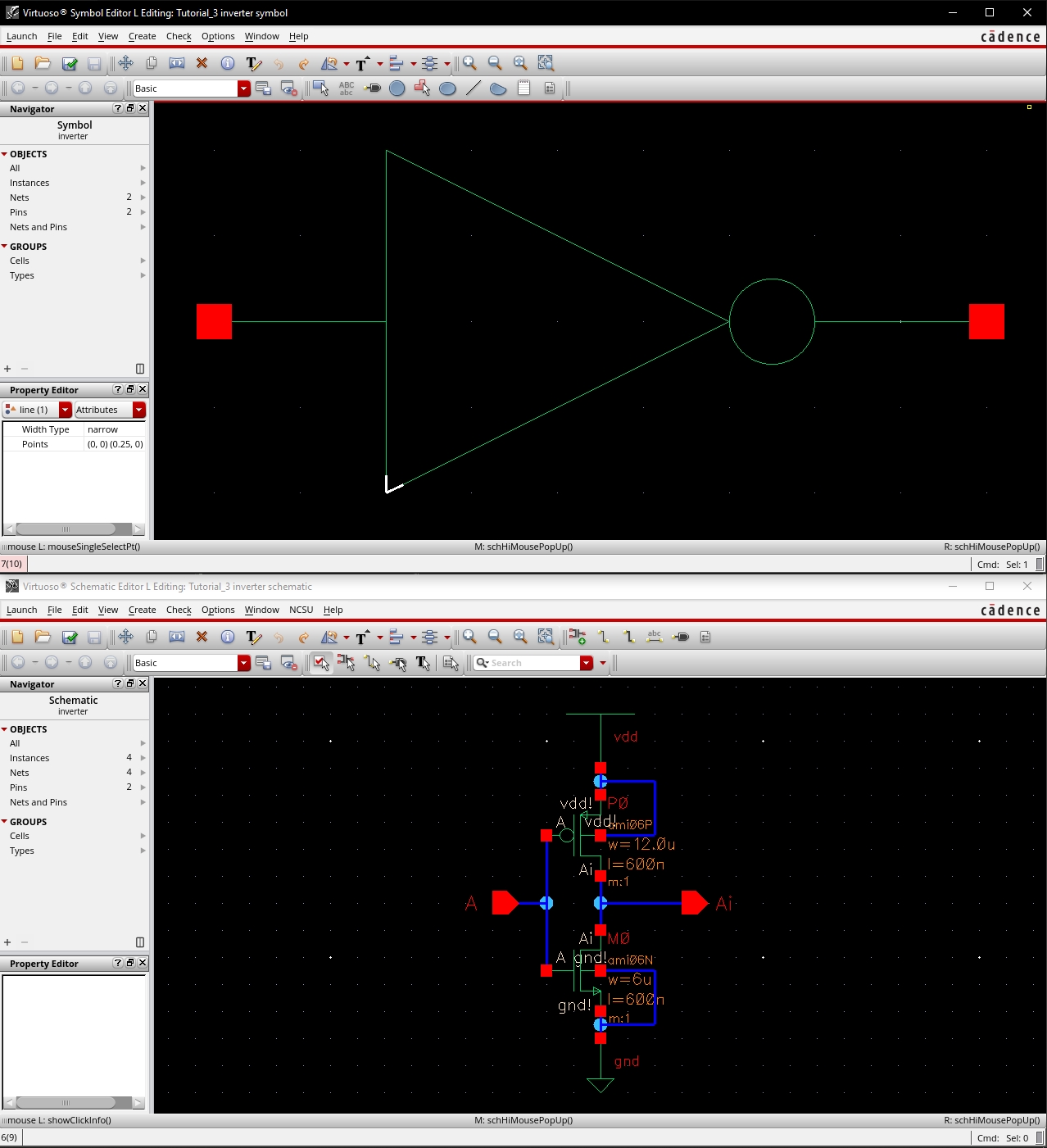 Below is my symbol and schematic for tutorial 3.