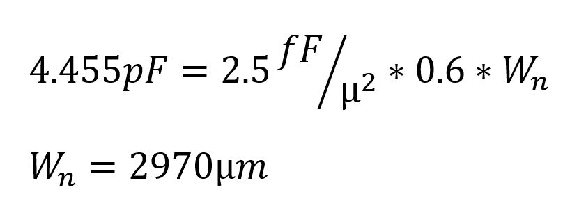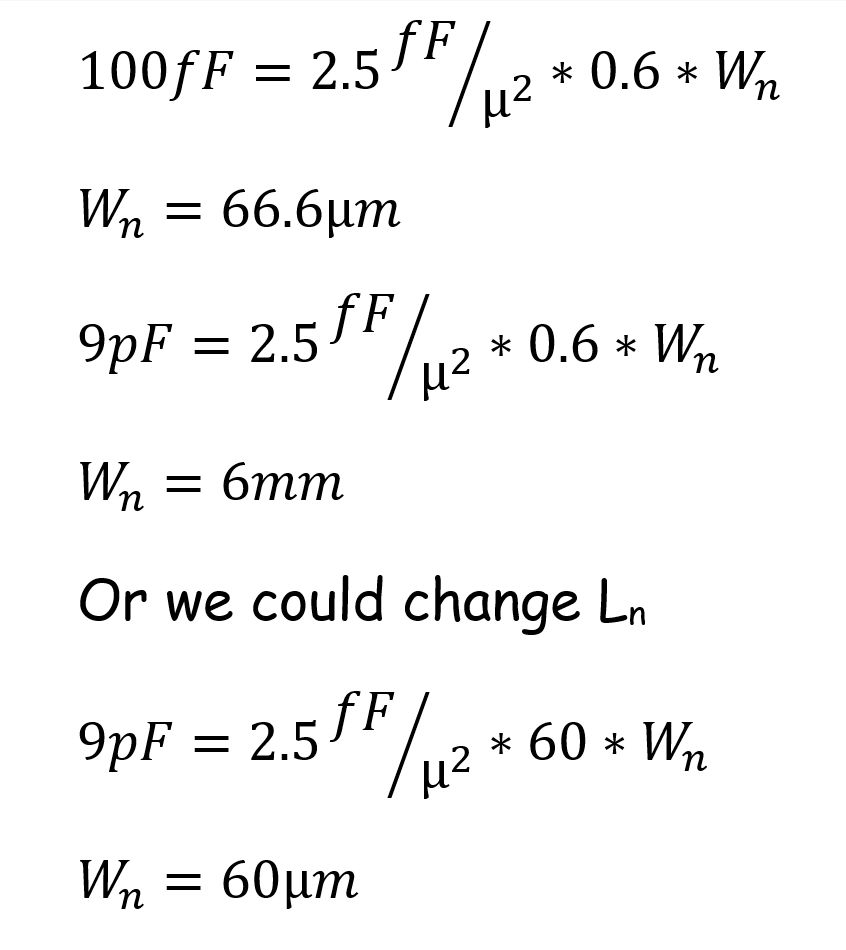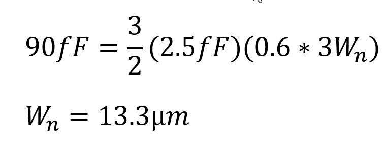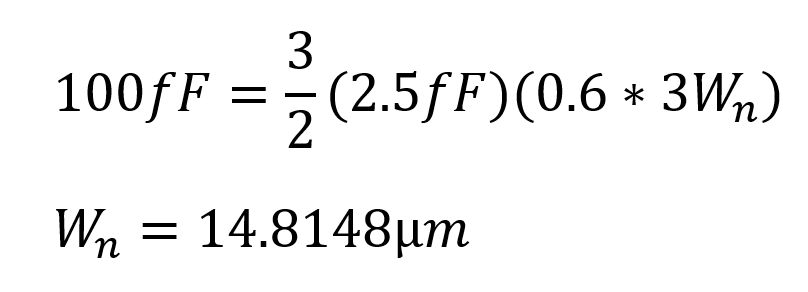 For choosing the size of our input inverter we need to ensure that Cin < 100fF using the formula below.