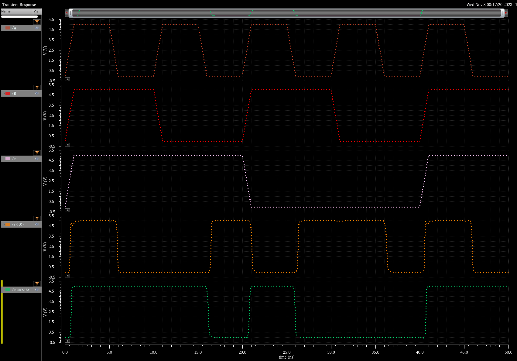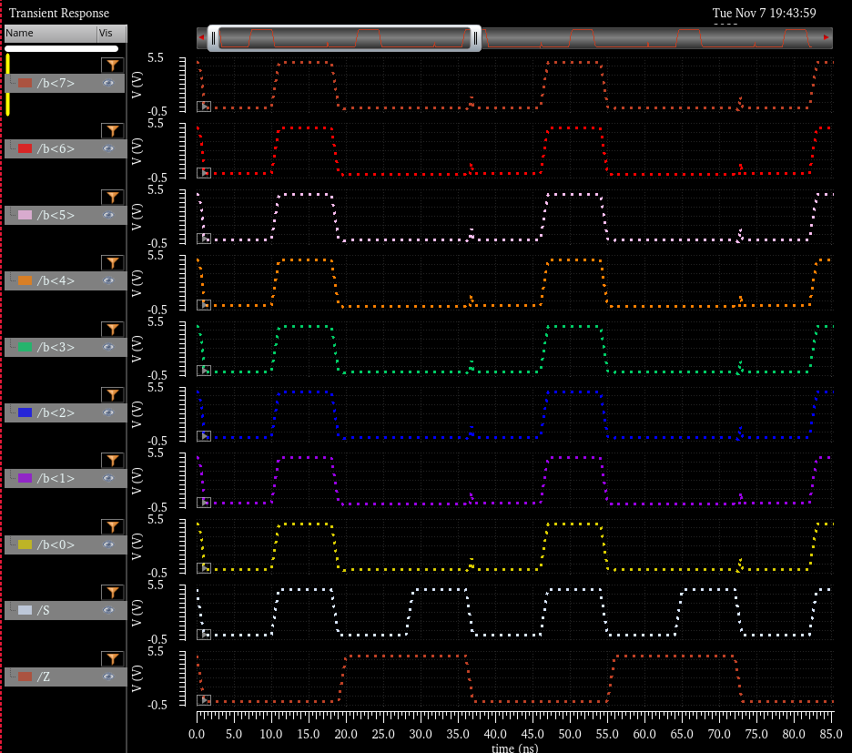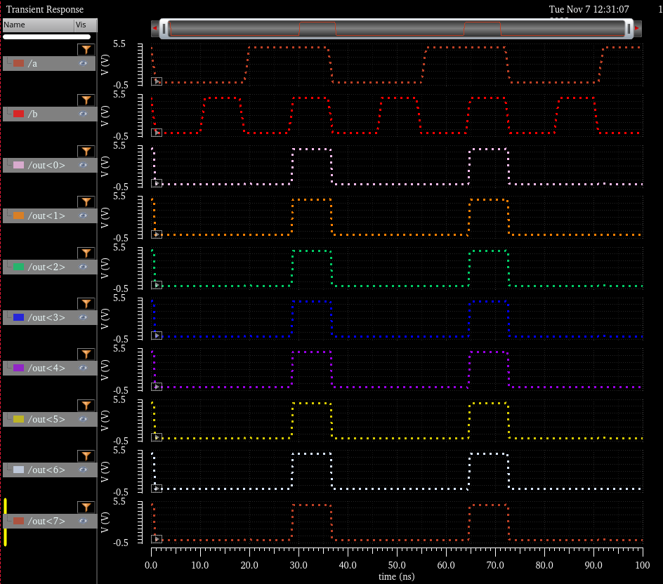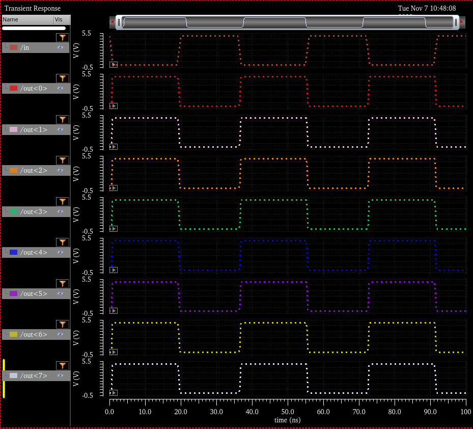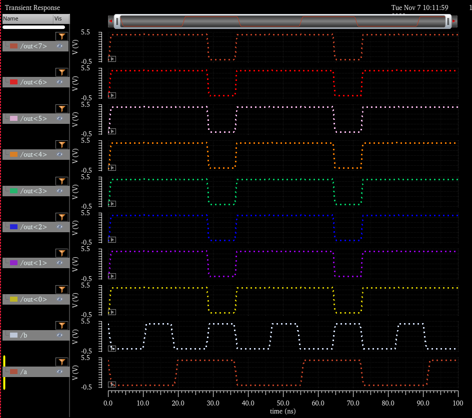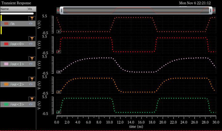 And here we have the simulation of the 4bit inverter