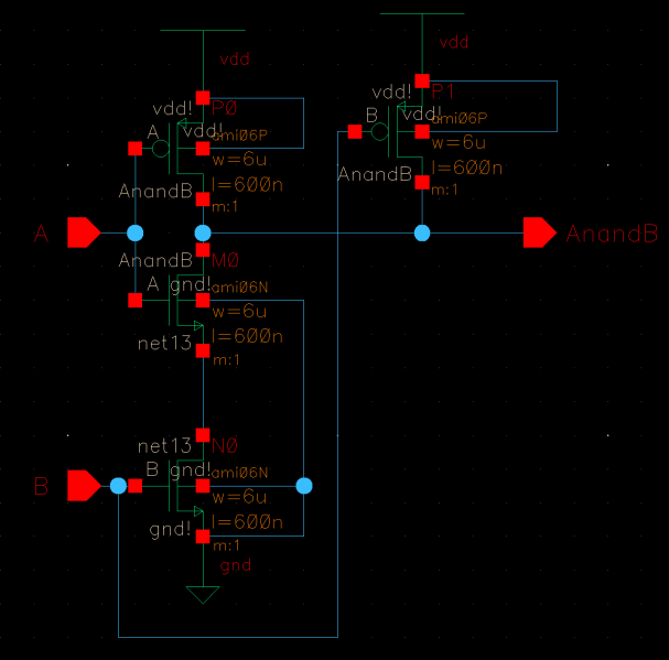AND gate, for this schematic we have the NAND and NOT together.