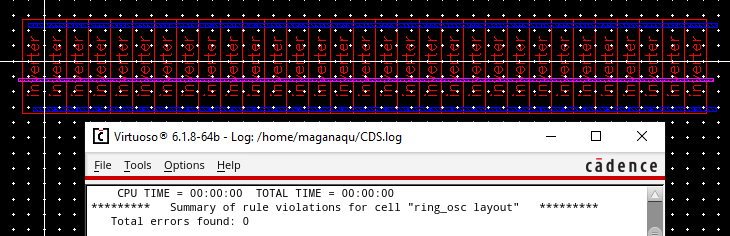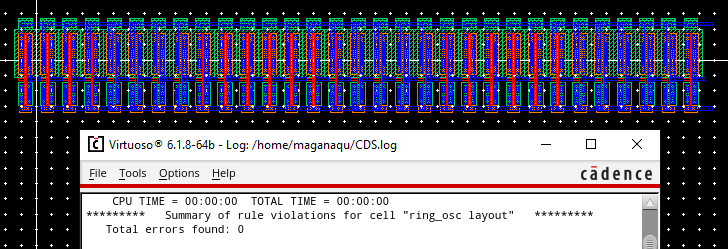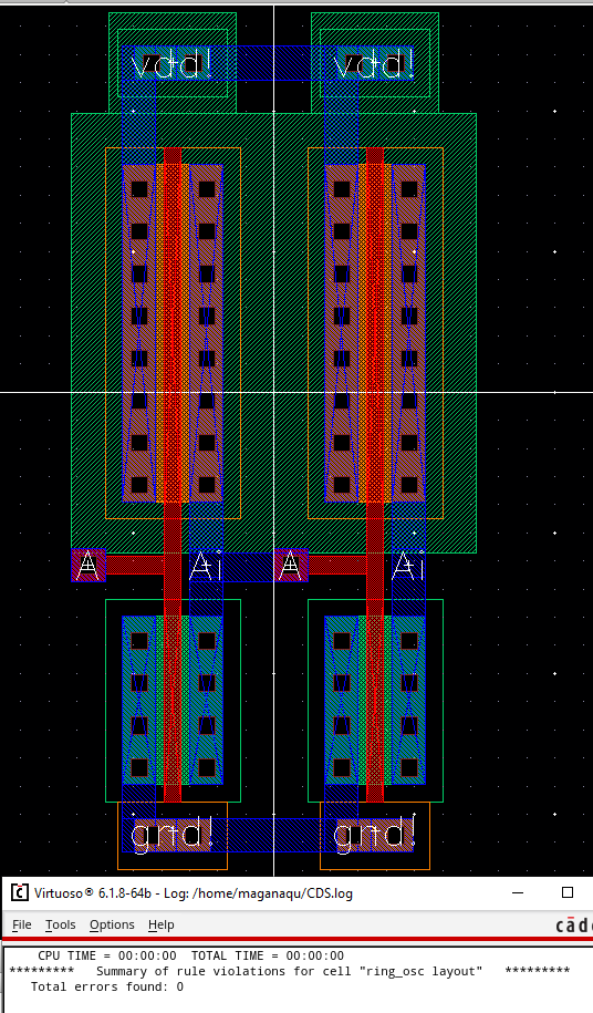 Now a layout for the ring oscillator with DRC clean