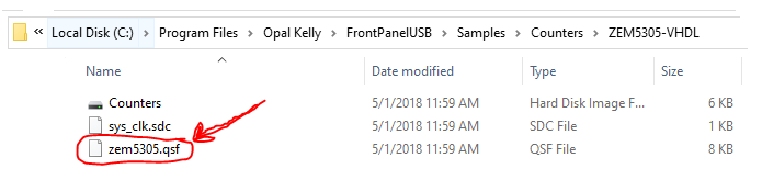 to locate the “zem5305.qsf” file in the Opal