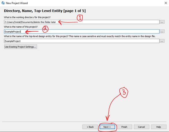 project, (3) hit “Next >”