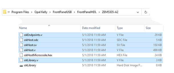Because the Opal Kelly ZEM5305 supports the Altera Cyclone V FPGA series, be