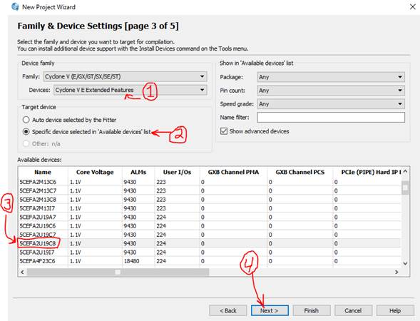 To minimize the list, under the (1) Devices drop down menu, select “Cyclone V E