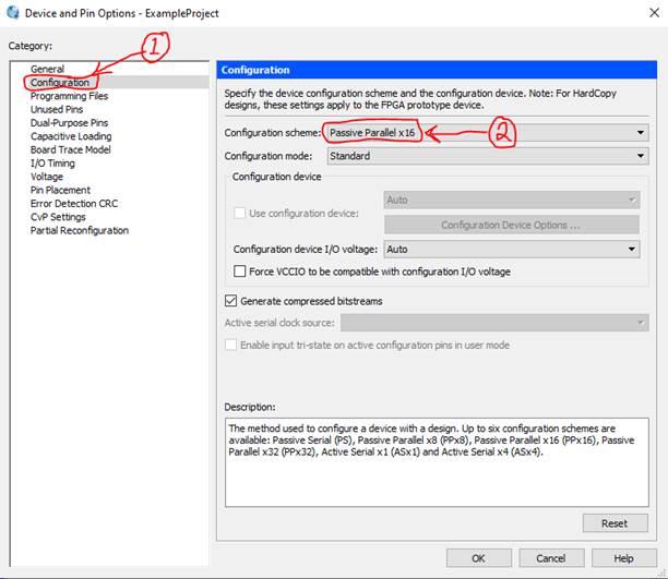 Assignments > Device… > Device and Pin Options… > Configuration