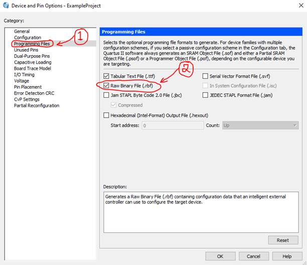 on Programming Files. Inside, make sure the Raw Binary File (.RBF) is