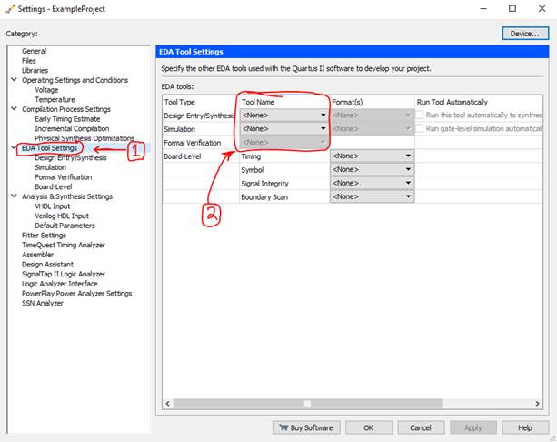 Assignments > Settings… > EDA Tool Settings