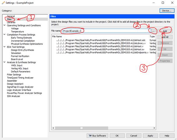 button and Add the Verilog file ProjectExample.v